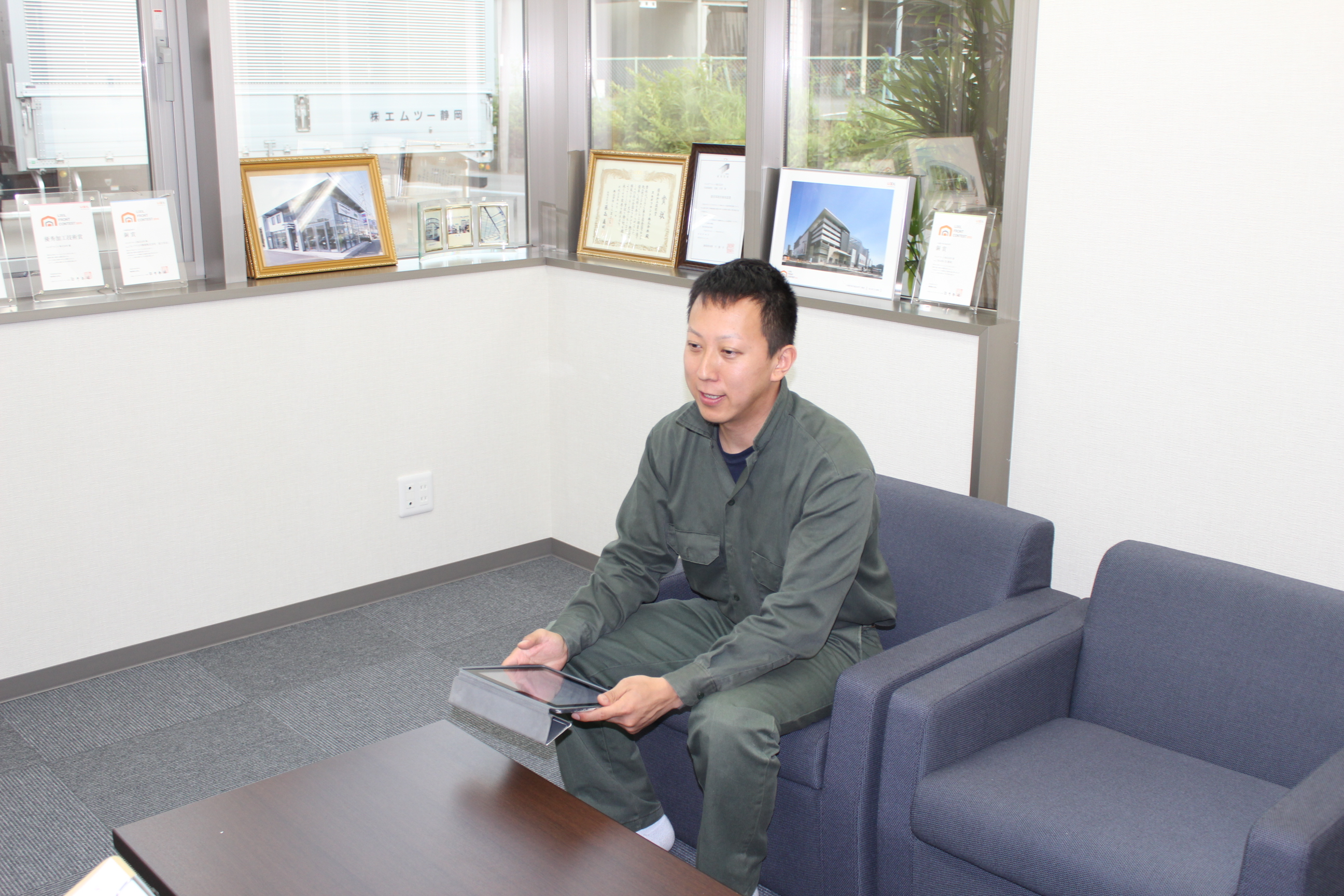 「常に高品質な製品を維持していることです。これにはちゃんと理由があって、独自の加工図があり、仕事を分担しているためです。分担しているから、後工程の人が前行程の人の仕事のミスを発見しやすくなります。実際に、他の業種の職人さんから『スルガフロントさんは品質がいい』と言ってもらっています。そんなときは、この会社で働くことの誇りを感じます。 あと会社から一人に一台、iPadを渡されています。専用のアプリで製造工程を把握したり、連絡や発注をメールしたり、ペーバーレス化を図ったりと、業務の効率化が図られています。」